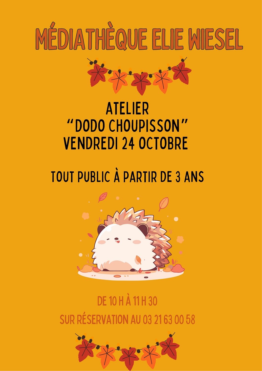 Ouvrir le panel d'outils Imprimer Dodo choupisson Détails des prochaines sessions Le vendredi 24 octobre 2025 de 10:00 à 11:15 Public Enfants 0 - 5 ans Lieu Médiathèque Elie Wiesel Prochaines sessions